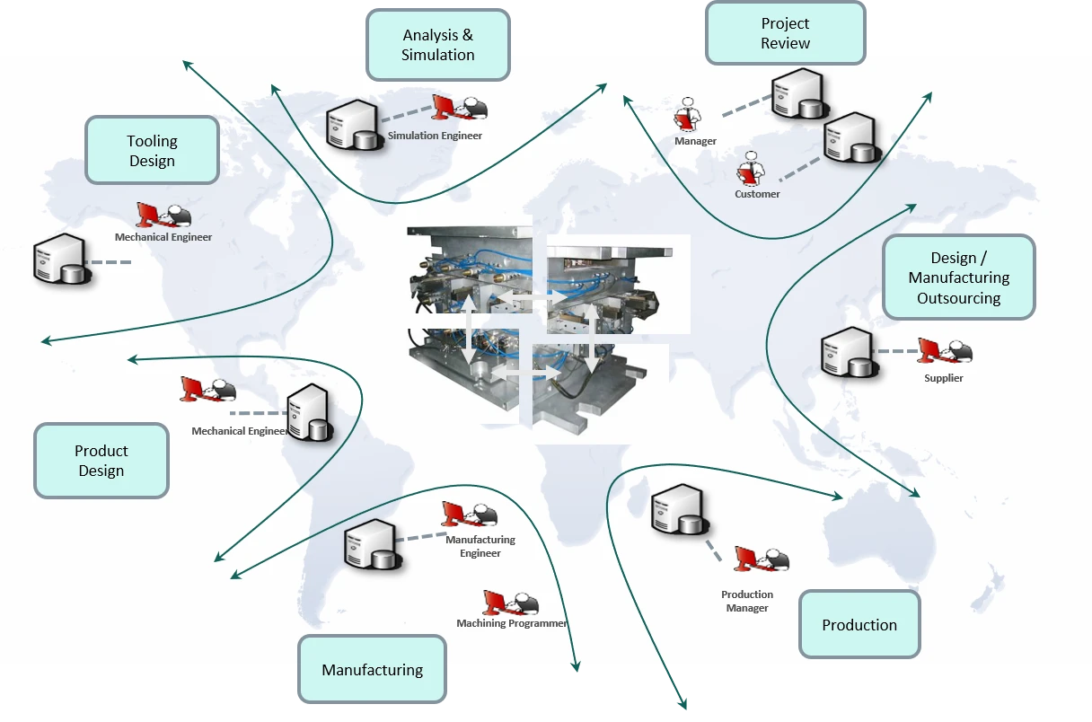 Các kỹ sư thiết kế CAD, kỹ sư mô phỏng CAE và kỹ sư lập trình CAM có thể làm việc đồng thời trên cùng một mô hình. Bất kỳ sự thay đổi nào từ bộ phận thiết kế cũng lập tức hiển thị thông báo đến bộ phận gia công, tránh rủi ro sản xuất sai bản vẽ phiên bản cũ.